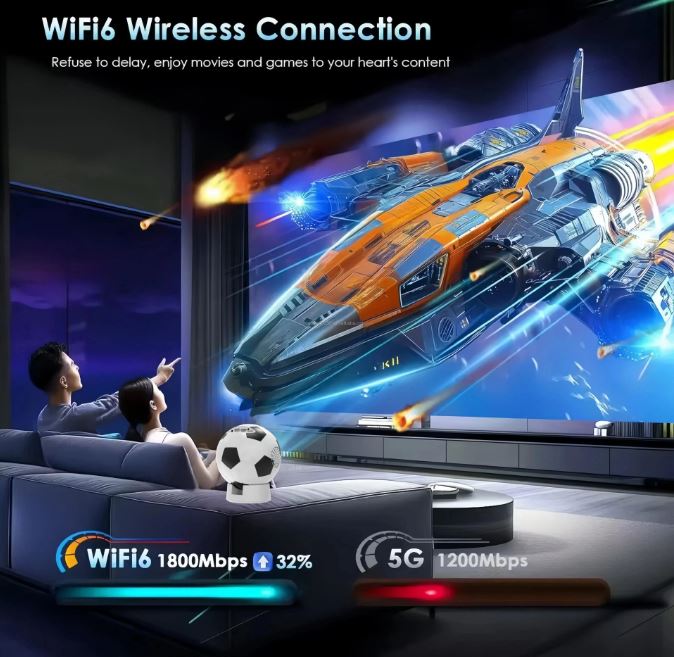F20 Football Shaped Smart Projector – with Android 13.0 and WiFi 6.0
